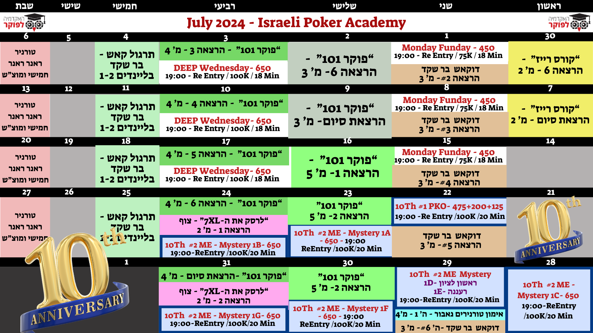 לו"ז חודשי מעודכן – הרצאות, קורסים, טורנירים ואירועים מיוחדים